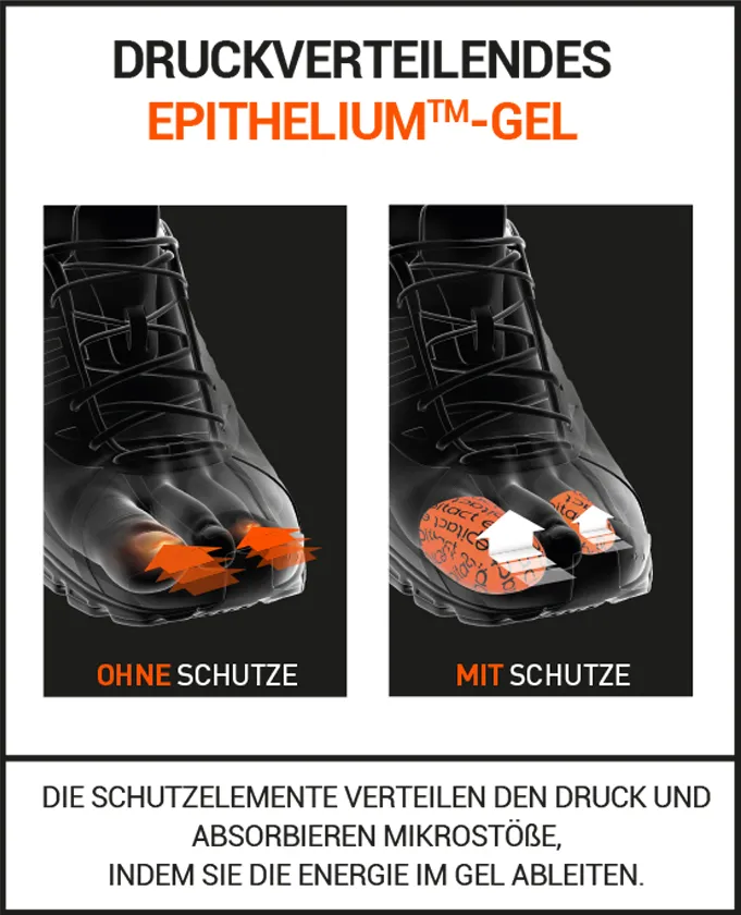Blaue Nägel bilden sich infolge wiederholter Stöße gegen den Schuh (Wandern, Trail, Laufen) oder werden durch Zusammenstöße mit anderen Spielern verursacht (Fussball, Rugby…). Genau in diesen Situationen bieten die EPITHELIUMTACT 02 EPITACT SPORT Zehenkappen gegen blaue Nägel höchst effizienten Schutz. Sie wirken vorbeugend und sind ebenso angezeigt, wenn sich bereits blaue Nägel gebildet haben.